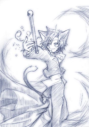 手には、ステッキと、赤い布。